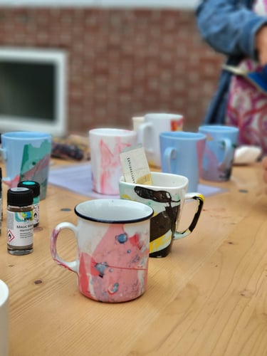 A moment of calm, carried by the magic of water. With the art of marbling (Ebru), you decorate a porcelain mug. This workshop helps teams reflect on collaboration while creating something unique together. Itβs also a wonderful activity for children, who can joyfully explore the magic of water and color. Youβll take home a mug you can use every day β a lasting memory of your creation.